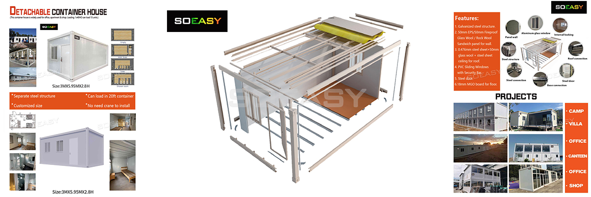 ประสิทธิภาพการขนส่งสูงสุด (ข้อได้เปรียบของผู้ค้าส่ง) แตกต่างจากหน่วยประกอบสำเร็จรูป ระบบแบบถอดประกอบได้ของเราช่วยให้คุณสามารถบรรจุสินค้าได้มากขึ้นอย่างเห็นได้ชัดในตู้คอนเทนเนอร์ขนาด 40'HQ เพียงตู้เดียว ทำให้เป็นโซลูชันที่คุ้มค่าที่สุดสำหรับแคมป์ก่อสร้างชั่วคราวและคำสั่งซื้อขายส่งปริมาณมาก