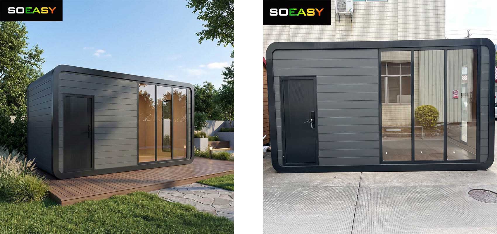 เนื่องจากไม่จำเป็นต้องมีฐานรากคอนกรีต ปัญหาเรือนกระจก: กระจกบานใหญ่โดยทั่วไปมักทำให้ห้องร้อน เราแก้ปัญหานี้ด้วยกระจกนิรภัยสองชั้น Low-E การอัปเกรดเพื่อ "ทำงานจากที่บ้าน": นอกเหนือจากการท่องเที่ยวแล้ว ยูนิตนี้ยังเป็นสำนักงานในสวนที่ดีที่สุด สามารถติดตั้งในสวนหลังบ้านเพื่อสร้างห้องทำงานส่วนตัวที่เก็บเสียงและปราศจากสิ่งรบกวนสำหรับผู้บริหารที่ทำงานจากระยะไกล ไม่มีเสียงก่อสร้าง ไม่มีสิ่งสกปรก